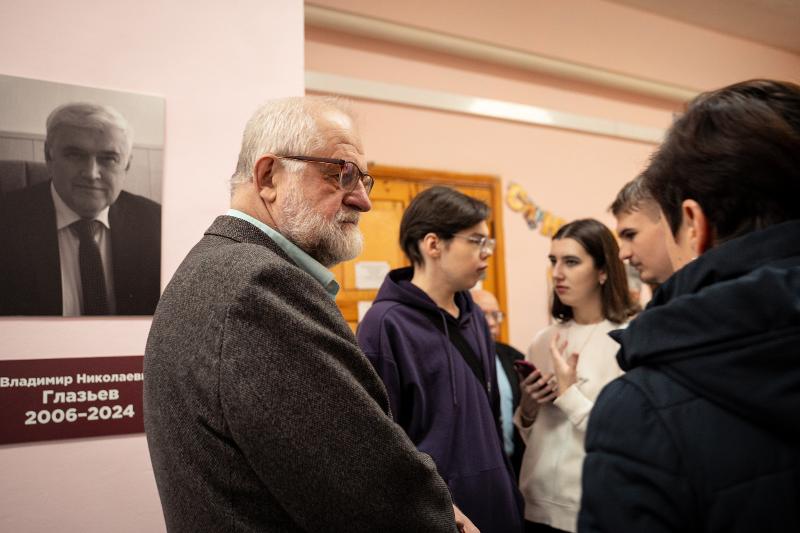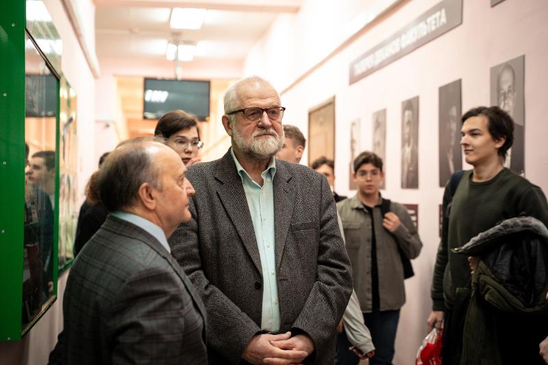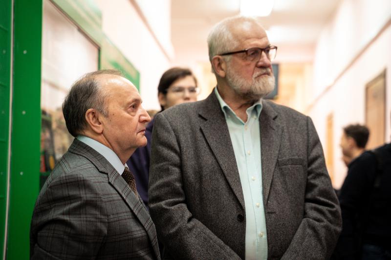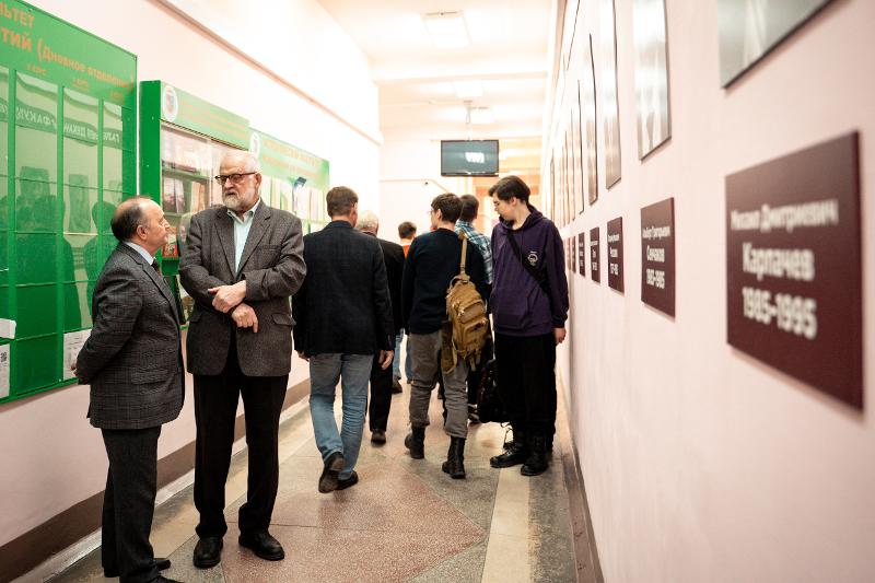 После открытия выставки профессор кафедры истории России Михаил Дмитриевич Карпачев прочитал лекцию об истории факультета.
