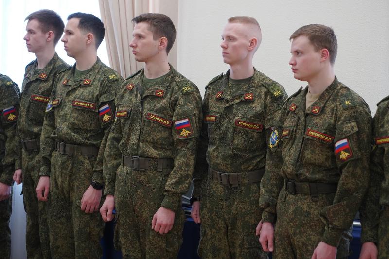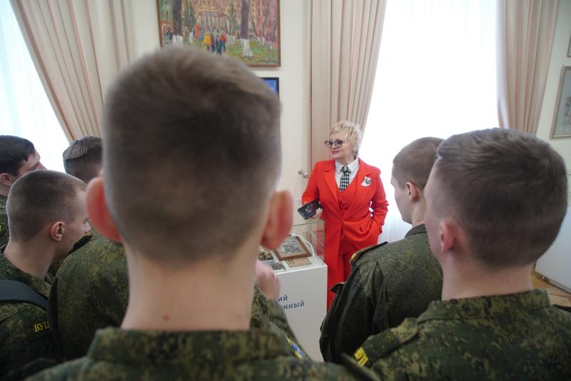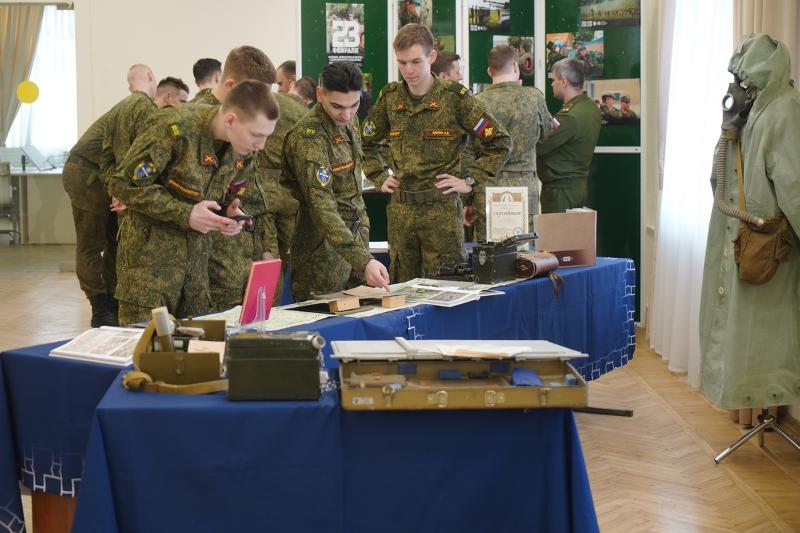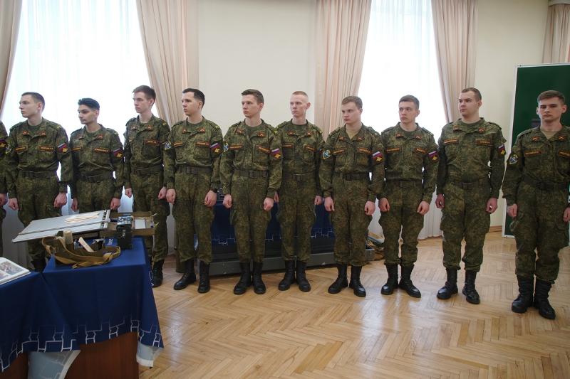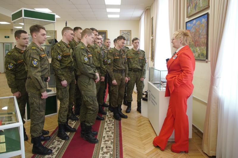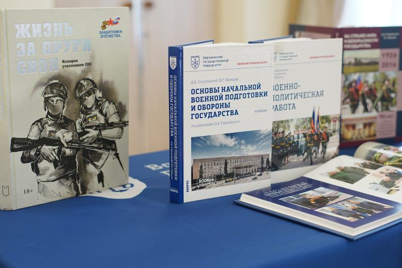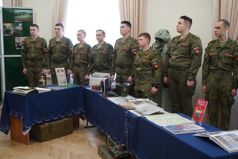 На праздничной церемонии присутствовали студенты Военного учебного центра университета. После краткой экскурсии, посвящённой истории Воронежского государственного университета, они осмотрели выставку «Отвага, мужество и честь», на которой представлены образцы воинского обмундирования, красочно проиллюстрированные издания, посвящённые Дню защитника Отечества, прибор управления огнём «ПУО-9», различные дозиметрические приборы, прибор для расчёта корректур «ПРК-75», сбитый и обезвреженный украинский дрон, а также другие экспонаты.