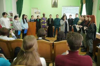 20 февраля в Никитинской библиотеке воронежцы отметили Международный день родного языка. Организаторами городского праздника выступили Воронежская служба русского языка филологического факультета ВГУ и ВОУНБ им. И.С. Никитина. Международный день родного языка собрал студентов ВГУ, ВИ МВД РФ, ЦФ РГУП им. В.М. Лебедева, Воронежского музыкального колледжа имени Ростроповичей, Воронежской государственной академии спорта, Воронежского юридического техникума, Воронежского техникума строительных технологий.