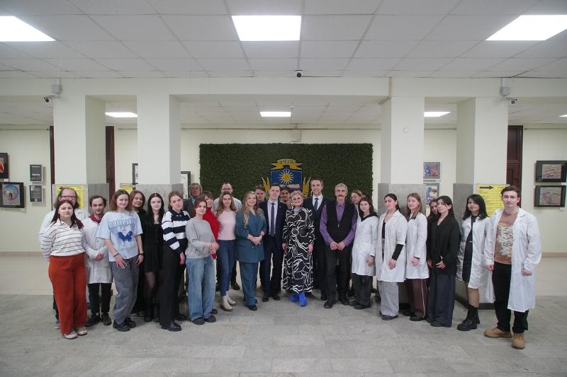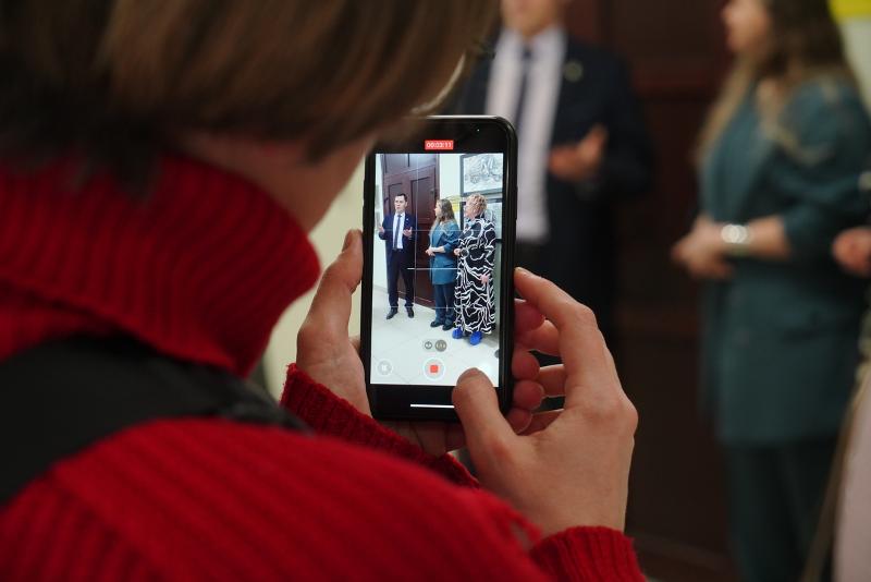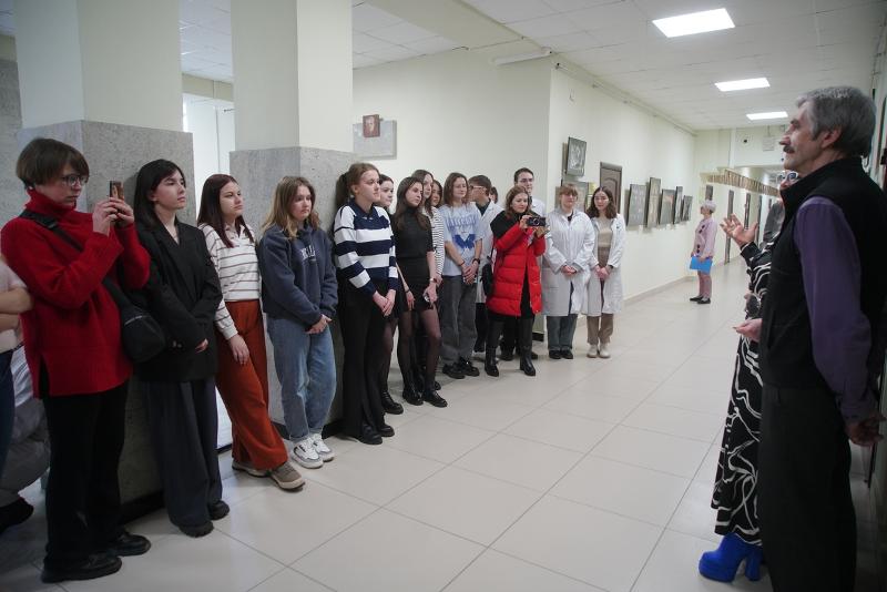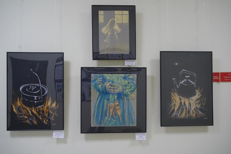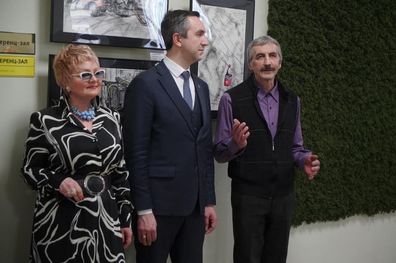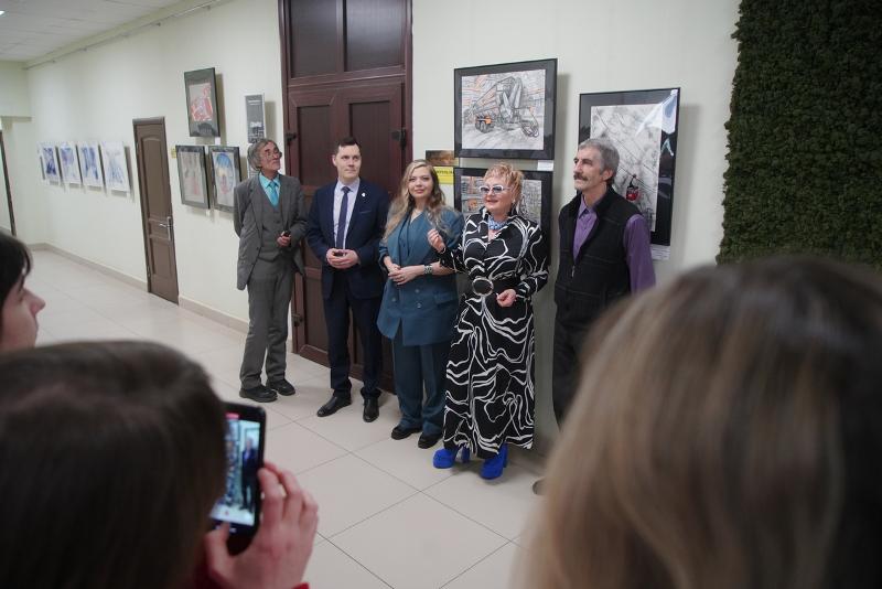 – Когда мы из наших аудиторий, кабинетов и лабораторий выходим в коридор университета, то как через некий портал, попадаем в другую реальность, – в совершенно другой мир! В тот мир, который передал на полотне художник и показал нам какие-то самые важные, ключевые моменты, которые ему жизненно необходимы. И вот, действительно: стоишь, рассматриваешь новые картины, хотя бы, вот этого кота, совершенно потрясающего! Эту графику, на которой роботы какие-то, комбайны… И ты застываешь, задумываешься. Конечно же, потом идёшь работать дальше. Но эти несколько секунд, когда ты побывал в новом для тебя мире, – они остаются с тобой и говорят, что счастье – это тот путь, который ты проделываешь, чтобы достичь какой-то цели, и – даже в том, когда мы с вами просто-напросто идём к своим аудиториям, проходя мимо вот этих вот замечательных произведений – таких новых, современных. Это очень важные компоненты нашей жизни, которые художники нам, можно сказать, дарят.