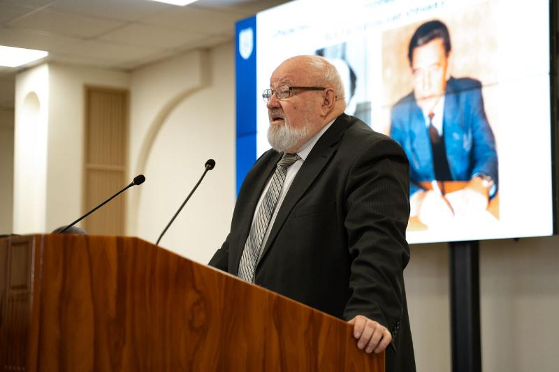 Рабочая часть конференции началась с доклада доктор филологических наук, профессора кафедры русского языка Тамбовского государственного университета имени Г. Р. Державина Анатолия Леонидовича Шарандина. Тема его выступления – «Вопрос о виде и его показателе в контексте грамматического учения А.М. Ломова и взглядов И.П. Распопова о научной и школьной грамматике».