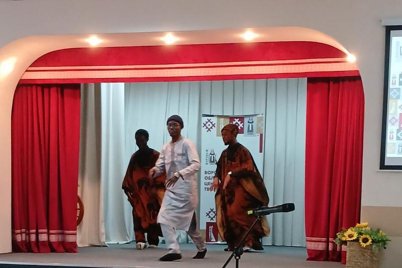 Учащиеся предвузовского этапа обучения Каливоги Мориба Пате, Пиви Жозеф, Хаба Исмаел Жак, Коному Пьер Витюс из Гвинеи исполнили зажигательный африканский танец. Cтудент 1 курса магистратуры ФМО Коне Сесе Давид покорил всех своим музыкальным исполнением.