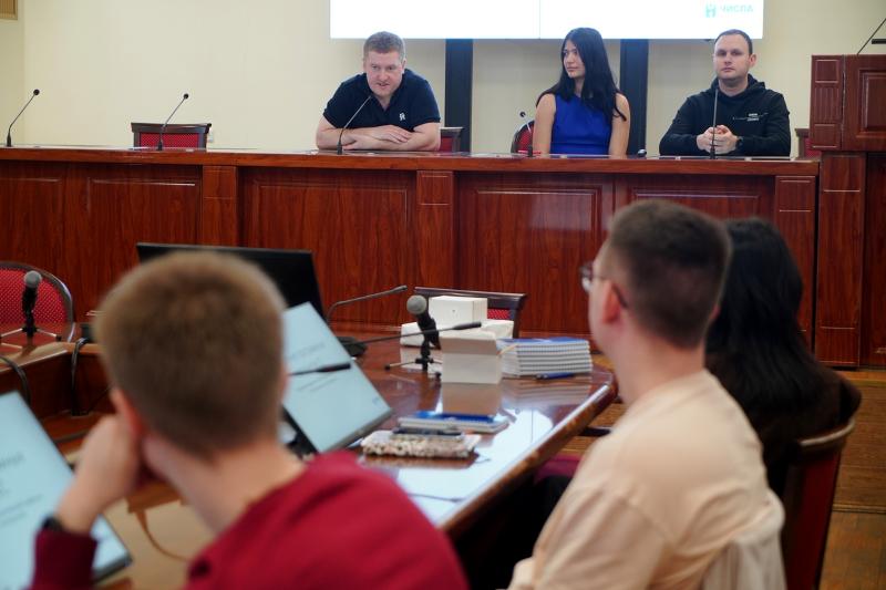 4 апреля в стенах Воронежского государственного университета состоялась встреча студентов математического факультета с IT-компанией «Числа». С приветственным словом выступили директор компании Андрей Майзель и HR-рекрутер Лолита Лазарева.