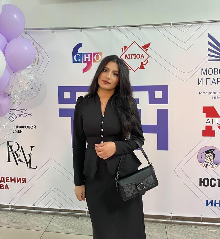 Студентка 4-го курса Хиромон Латифова выступила с докладом «Соотношение расчета убытков по моделям позитивного и негативного договорного интереса с реальным ущербом и упущенной выгодой на секции «Договорное право в современных экономических условиях: тренды и анархизмы».