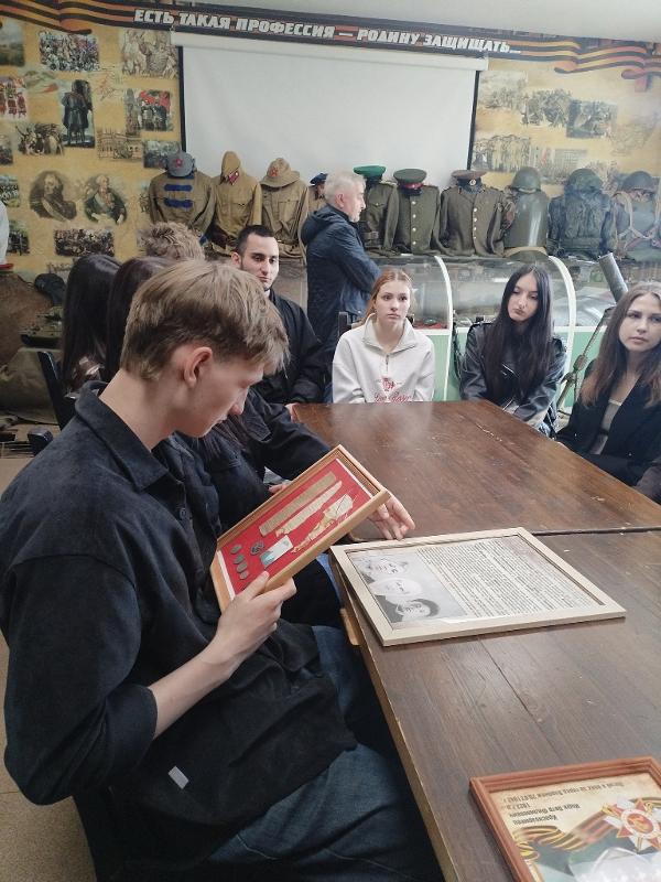Студентам представилась уникальная возможность ознакомиться с экспонатами, найденными в ходе поисковых операций. Некоторые из них – например, вкладыши смертных медальонов с сохранившимися записями — можно было рассмотреть и подержать в руках. Благодаря этим находкам удаётся установить имена погибших защитников Родины и увековечить их память.