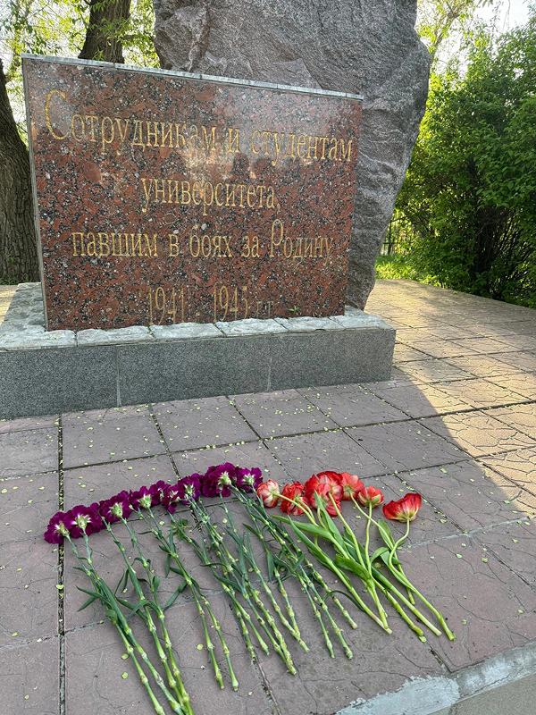 В завершении мероприятия состоялось возложение цветов к памятному знаку студентам и сотрудникам Воронежского государственного университета, погибшим в годы Великой Отечественной войны.