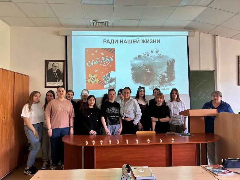 23 апреля состоялся круглый стол «Ради нашей жизни» для студентов СПО, в ходе которого обучающиеся смогли поделиться историями о воевавших родственниках и вместе с преподавателями почтили память павших воинов минутой молчания.