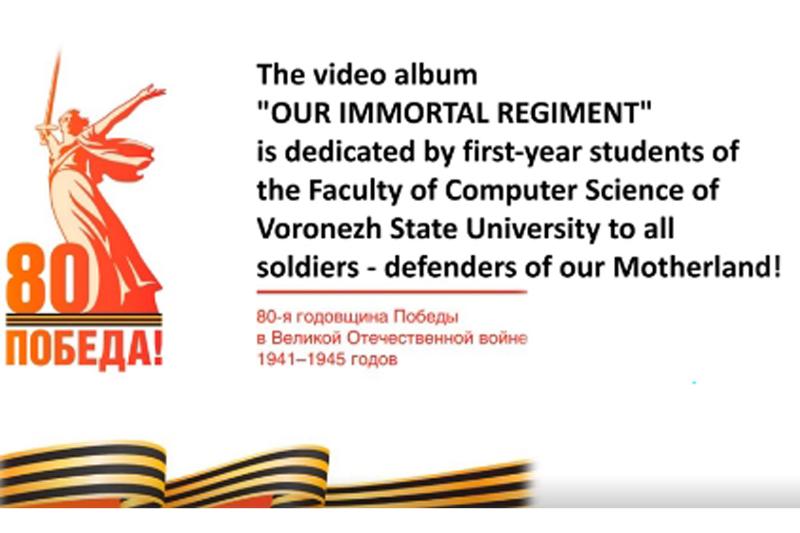 21 мая 2025 года студенты-первокурсники факультета компьютерных наук Воронежского государственного университета собрались вместе, чтобы посмотреть видеоальбом OUR IMMORTAL REGIMENT / НАШ БЕССМЕРТНЫЙ ПОЛК, который они сами подготовили и отсняли в преддверии замечательного праздника.