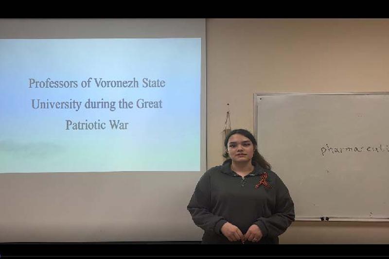 Готовясь к юбилейному 9 Мая, студенты 5 группы первого курса факультета компьютерных наук ВГУ поделились рассказами о самих реликвиях, хранимых в их семьях, и о тех, кто заслужил эти награды. В течение нескольких занятий по английскому языку студенты выступали с презентациями об историях подвига их прадедушек и прабабушек, сражавшихся за победу на фронте и обеспечивавших её в тылу.