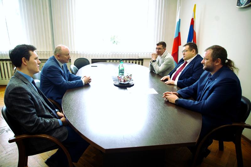 Во встрече также приняли участие и.о. проректора по науке, инновациям и цифровизации Дмитрий Владимирович Костин, декан факультета ПММ Сергей Николаевич Медведев и заместитель декана Константин Александрович Федутинов.