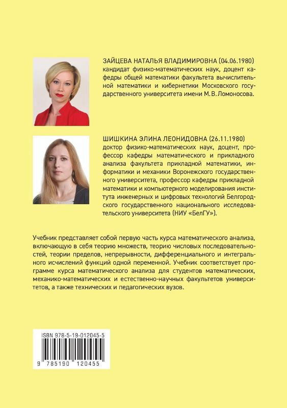 В издательстве Московского государственного университета вышла новинка – учебник «Математический анализ. Часть 1», авторами которого являются доцент кафедры общей математики факультета вычислительной математики и кибернетики Московского государственного университета имени М.В. Ломоносова Наталья Владимировна Зайцева и профессор кафедры математического и прикладного анализа факультета прикладной математики, информатики и механики Воронежского государственного университета Элина Леонидовна Шишкина.