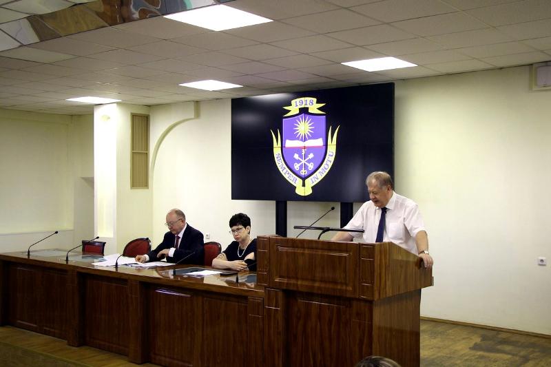 Открыл заседание Учёного совета исполняющий обязанности ректора ВГУ Юрий Николаевич Старилов. Традиционно собравшиеся поздравили членов Учёного совета, чьи дни рождения пришлись на июль и август текущего года.