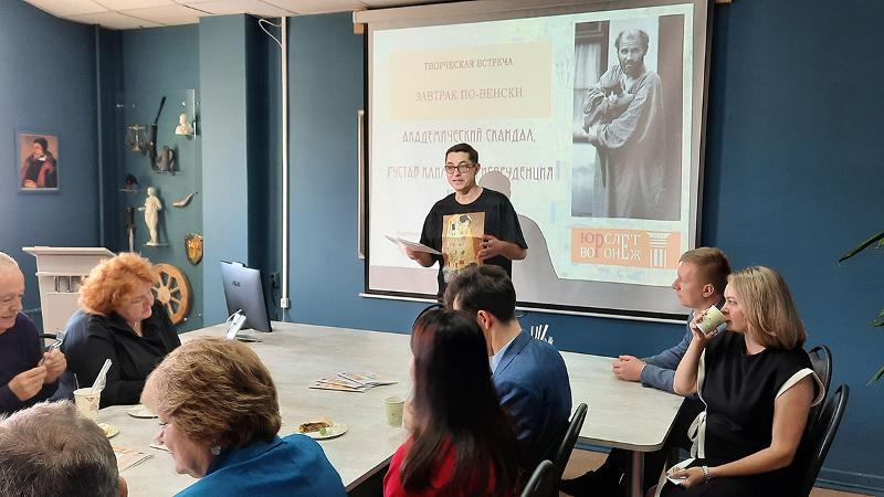 15 сентября в рамках «Воронежского юридического слета – 2025» состоялась творческая встреча, посвященная наследию Густава Климта, под названием: «Завтрак по-венски. Академический скандал: Густав Климт и юриспруденция». Гости и докладчик – заведующий кафедрой организации судебной власти и правоохранительной деятельности ВГУ Денис Валентинович Зотов, рассуждали о соотношении академической науки и творческой свободы художника на примере событий, случившихся в Вене в начале XX столетия.