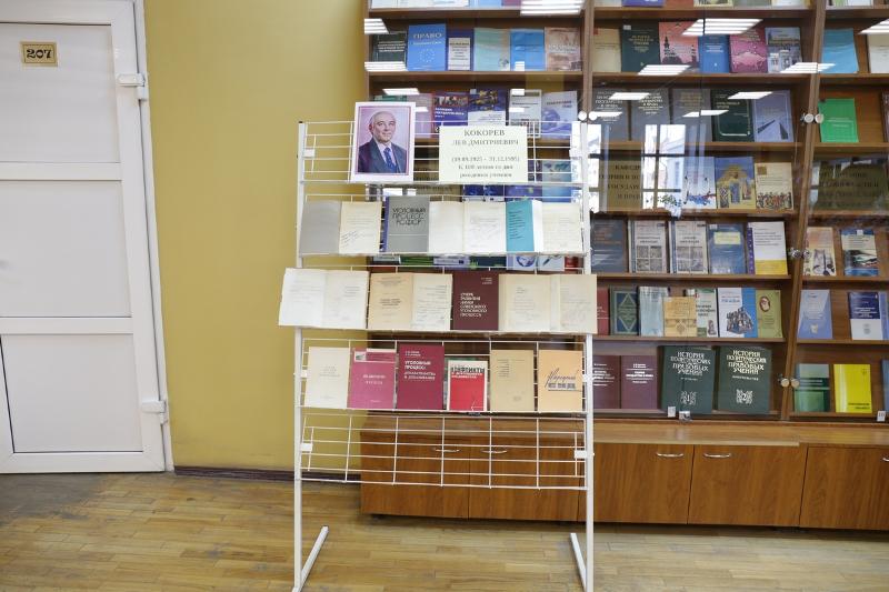 Экспозиция посвящена научному наследию учёного. На ней представлены труды, отражающие основные этапы научного и творческого пути Л.Д. Кокорева, его концептуальные идеи в области теории и практики судоустройства, уголовного процесса, прокурорского надзора и профессиональной этики юриста. Подборка литературы включает библиографию трудов учёного, монографии, статьи, помещенные в различных сборниках и журналах, а также юбилейные издания Воронежского университета со статьями ученых, посвященными личности и научной работе Л.Д. Кокорева.