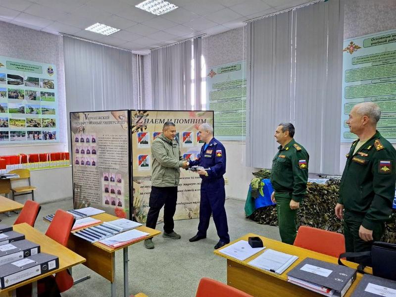 От имени командования одного из артиллерийских подразделений офицер с позывным «Азиат» поблагодарил представителей Воронежского государственного университета.