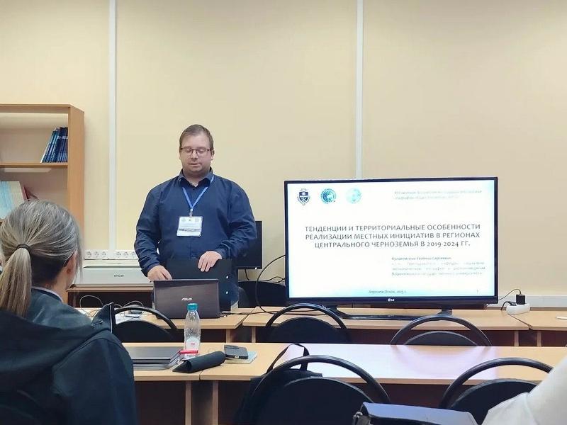 Е.С. Кулаковский выступил с докладом на тему: «Тенденции и территориальные особенности реализации местных инициатив в регионах Центрального Черноземья в 2019–2024 гг.» в секции «Пространственные аспекты и векторы реализации Национальных целей развития Российской Федерации. Демографическая ситуация в современной России и её общественно-географические исследования». В сообщении были рассмотрены вопросы реализации местных инициатив в регионах Центрального Черноземья, выполнен анализ реализованных проектов, а также определены приоритеты инициативного бюджетирования в регионах Центрального Черноземья, в том числе на конкретных примерах.