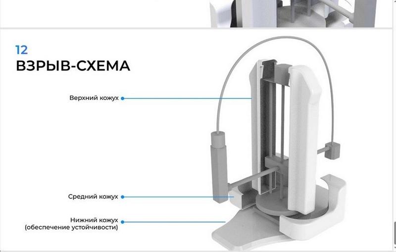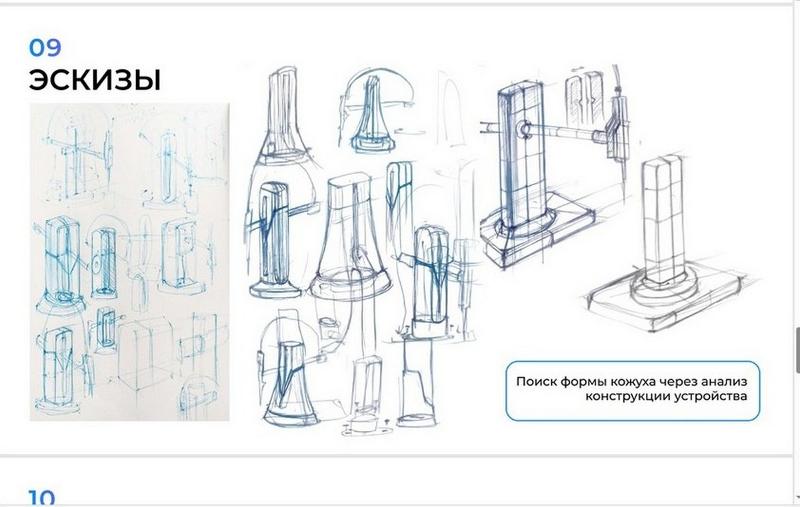 Кроме того, студенты кафедры промышленного дизайна под руководством кандидата искусствоведения Л.С. Филатова разработали эскизные проект кожуха робота с учётом требований его химической инертности, простоте обработки дезинфектантами, ремонторпригодности и лёгкости доступа к системам функционирования и управления робота.
