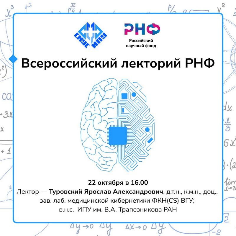 В рамках проекта РНФ «Всероссийский лекторий» была прочитана лекция Ярослава Александровича Туровского, д.т.н., к.м.н., доц., зав. лаб. медицинской кибернетики ФКН(CS) ВГУ, в.н.с. лаборатории 38 ИПУ РАН.