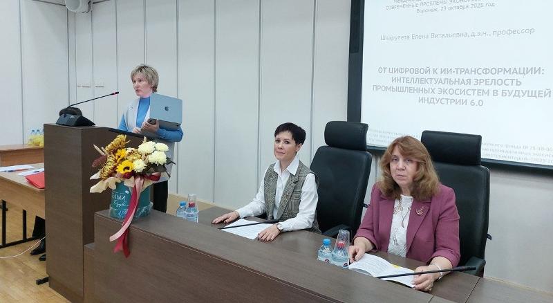- профессор ВГТУ, ведущий научный сотрудник СПбПУ, д.э.н. Елена Витальевна Шкарупета выступила с докладом на тему: «От цифровой к ИИ-трансформации: интеллектуальная зрелость промышленных экосистем в будущей индустрии 6.0»;