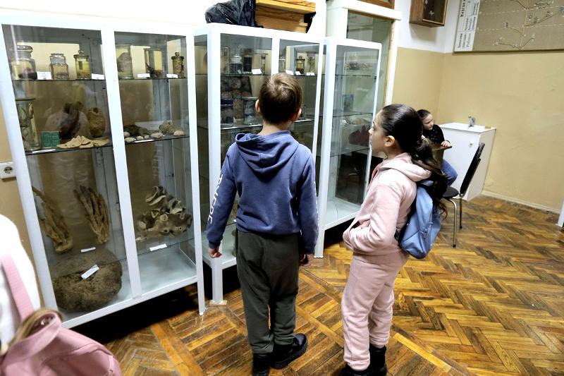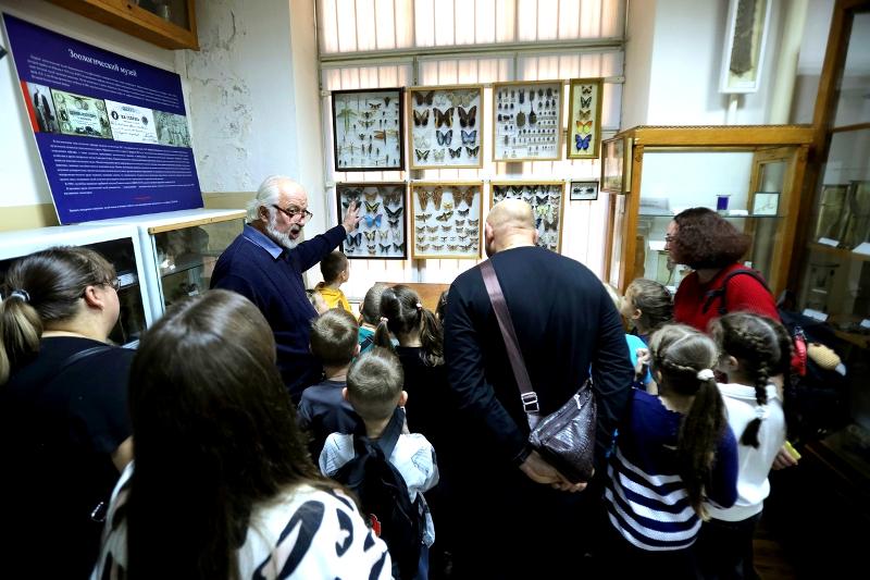 Затем состоялась экскурсия по музеям медико-биологического факультета. Ребята с огромным интересом рассматривали рыб, экзотических бабочек, ракушки. Как всегда, восторг вызвали экспонаты Зоологического музея. Дети узнали множество интересных фактов о живой природе, познакомились со слоном, который жил в XIX веке и даже с летучей лисой.