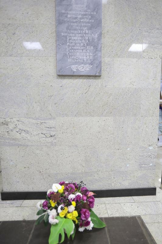 12 ноября в Главном корпусе ВГУ прошло возложение цветов к мемориальной доске в честь 107-летия начала занятий в университете.