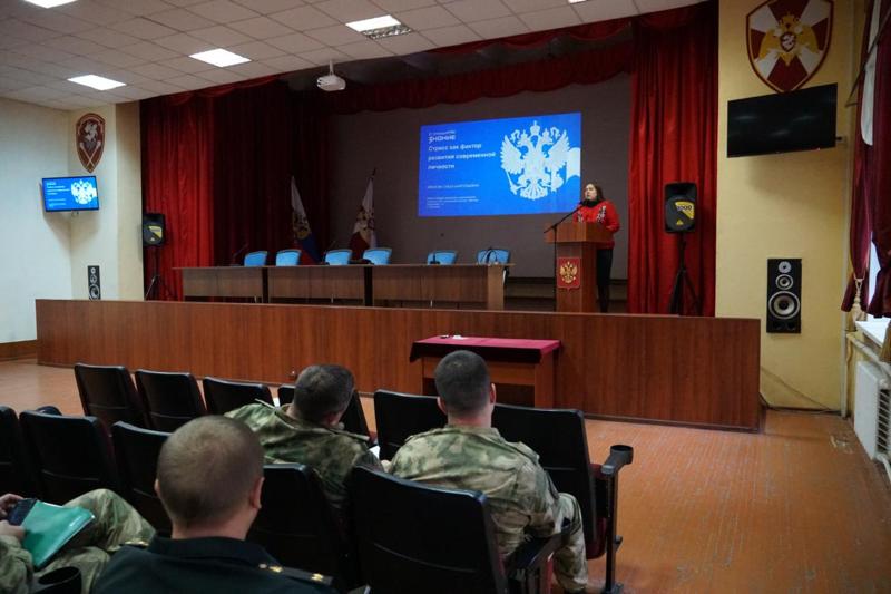 31 октября состоялось выступление перед сотрудниками Росгвардии. Семинар с представителем Российского общества «Знание» прошёл в Управлении Росгвардии по Воронежской области. Темой лекции стал «Стресс как фактор развития личности». Слушателям представили материал о видах этого состояния, возможных причинах возникновения психологического стресса, была раскрыта польза короткого стресса, который мобилизует наш организм и эмоциональную сферу, а также рассмотрены меры профилактики разрушающего воздействия длительного стресса.