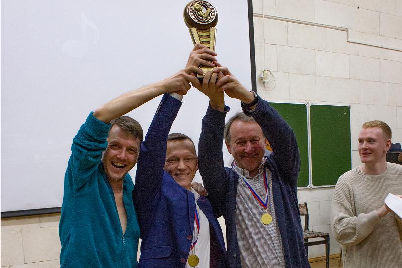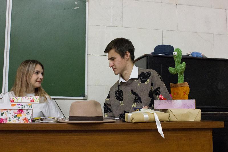 И концерт вышел великолепным. Ведущие праздника – студенты Александра Богатова, Андрей Ряховский, Дмитрий Литвинов, подготовившие остроумный сценарий, – представили артистический конферанс. Аплодисменты постоянно переходили в овации. Всем очень понравился музыкальный подарок от юных домристов из музыкальной школы № 7, в которой училось много славных журфаковцев, а сейчас там играют и дети выпускников факультета. Младший ансамбль «Мажорики» исполнил шуточную пьесу «Пошпирляли» Сергея Воронкова и «Марш дружбы» Александра Цыганкова (руководитель – Ирина Петровна Хрипунова, концертмейстер – Сергей Александрович Воронков). А затем выступил старший ансамбль «Русские сувениры» (Альфред Шнитке, мелодия из кинофильма «Сказка странствий»; Сергей Воронков, «Краски мира»).