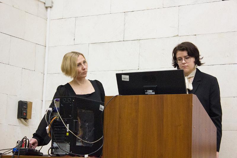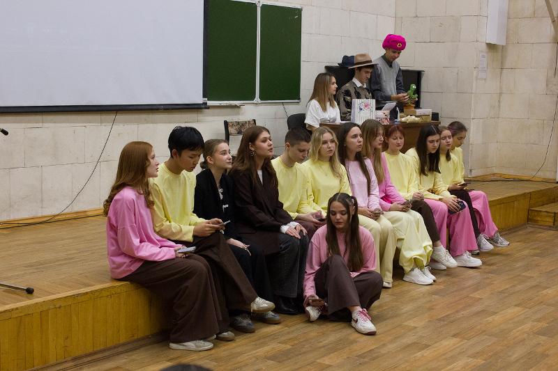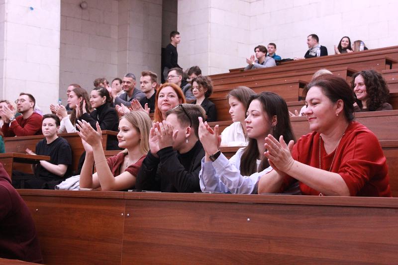 Выпускница Татьяна Перова, как и в студенческие годы, порадовала зрителей чудесным пением; её эстафету приняли студенты, накануне отлично выступившие на конкурсе «Первокурсник–25», – в их репертуаре были и песни, и танцы, и видеоклипы. Декан Владимир Васильевич Тулупов объявил о премьере гимна журфака – слова были написаны им давно, а вот музыкальную часть написал «Иван Иваныч»: так автор шутливо называет искусственный интеллект.