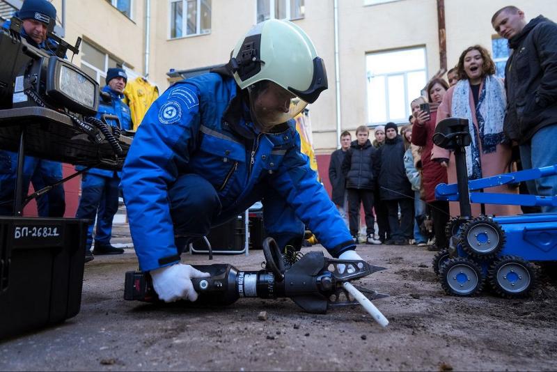 Участники мероприятия на экскурсии во внутреннем дворе университета смогли ознакомиться с оснащением аварийно-спасательных машин, в которых размещено оборудование лаборатории радиационного контроля, позволяющее оперативно реагировать на различные аварийные ситуации, в том числе – связанные с радиационным загрязнением местности. Студенты подержали в руках спектрометрическое, дозиметрическое и радиометрическое оборудование различных типов, а также примерили на себя образ спасателя, облачившись в дыхательный аппарат и костюм газоспасателя.