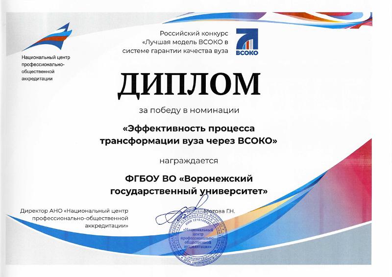ВГУ принял участие в конкурсе «Лучшая модель ВСОКО в системе гарантии качества вуза» и победил в номинации «Эффективность процесса трансформации вуза через ВСОКО».