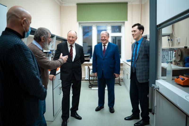 В торжественном открытии новых лабораторий приняли участие и.о. ректора ВГУ Ю.Н. Старилов, и.о. проректора по науке, инновациям и цифровизации Д.В. Костин, руководитель офиса технологического лидерства С.С. Антипов, декан химического факультета Б.В. Сладкопевцев и заведующий кафедрой органической химии, руководитель проекта Х.С. Шихалиев.
