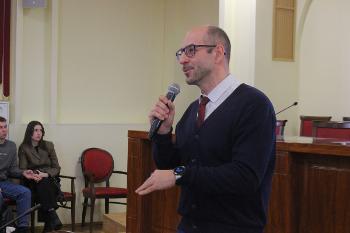 С приветственным словом выступил и.о. проректора по науке, инновациям и цифровизации, доктор физико-математических наук, доцент Дмитрий Владимирович Костин. В своём выступлении он указал на ключевую роль Воронежского госуниверситета в укреплении научно-технологического потенциала страны.