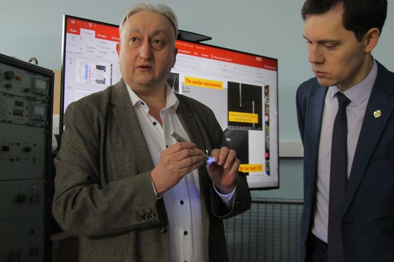 В Учебно-научной лаборатории нитрид-галлиевой и кремниевой электроники гостей встретил заведующий кафедрой физики твёрдого тела и наноструктур, д-р физ.-мат. наук Павел Владимирович Середин. Он познакомил гостей с лабораторией, которая создана для развития GaN-технологий и замещения импорта в радиоэлектронике к 2030 году.