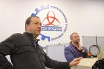 Декан факультета ПММ, канд. физ.-мат. наук Сергей Николаевич Медведев встретил гостей в учебно-практической лаборатории компании «ИНТЕХРОС». Здесь решаются учебные и прикладные задачи в сфере мехатроники и робототехники, осуществляется подготовка квалифицированных кадров с хорошим запасом знаний в передовых направлениях – машиностроении и информационных технологиях.