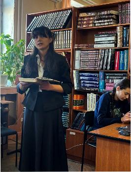 Именно поэтому участниками мероприятия стали и педагоги, которые поделились реализацией идей А.С. Макаренко в образовательной практике (заведующий кафедрой Л.В. Ковтуненко, профессор кафедры М.В. Дюжакова), и студенты, которые прочитали любимые отрывки из «Педагогической поэмы» – это было совместное творчество (Софья Дубовая, Юнес Кафарна, Мария Кожокарь, Егор Сухов).