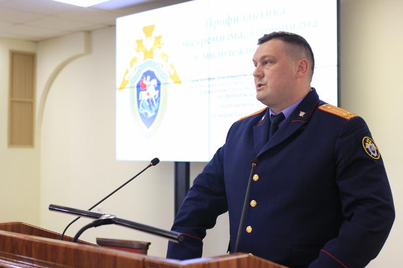 26 марта в конференц-зале Главного корпуса ВГУ состоялся профилактический семинар по противодействию экстремизму для студентов. Перед слушателями выступил следователь по особо важным делам следственного управления Следственного комитета РФ по Воронежской области Евгений Валериевич Гетманов. В своей лекции спикер рассказал о формах проявления экстремизма, в том числе в цифровой среде, и правовых основах противодействия экстремистской деятельности, а также привёл реальные примеры расследованных дел, иллюстрирующие последствия участия в запрещённых организациях.