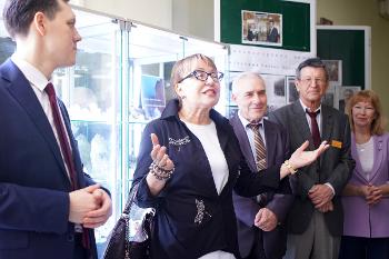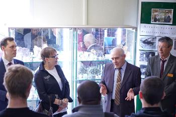 3 апреля в холле второго этажа Главного корпуса Воронежского государственного университета открылась выставка «Коллекционные минералы Дальнегорска», посвящённая Дню геолога. Открыл выставку и.о. проректора ВГУ по науке, инновациям и цифровизации Дмитрий Владимирович Костин. С приветственным словом к посетителям выставки обратилась генеральный директор — главный редактор АО «Студия «Губерния»» Зоя Яковлевна Грязева. Зоя Яковлевна девять лет была преподавателем геологическоого факультета ВГУ.