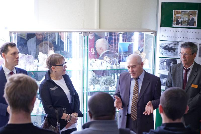 Для более зрелищного экспонирования минералов на выставке, были специально доставлены три удобных кейса-витрины, изготовленных из прочного стекла. На выставке представлены: кальциты, кварцы, рудные минералы, сфалериты, галлениты, андроиды из группы «Гранатов» и многие другие. Дальнегорск знаменит «грибными» кальцитами и совершенными и уникальными «грибными» кристаллами (сросшимися минералами необычной формы), которые не встречаются больше нигде в мире. Образцы местных кальцитов, флюоритов и галенитов украшают лучшие музеи планеты. Именно такие образцы стали экспонатами выставки в ВГУ.