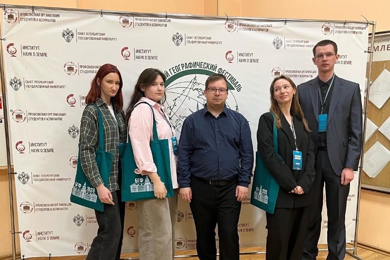 В период с 3 по 5 апреля 2026 года в Санкт-Петербурге на базе Института наук о Земле СПбГУ состоялся XXII Большой географический фестиваль (БГФ) – одно из ключевых событий в жизни географического сообщества России. В нём приняли участие представители факультета географии, геоэкологии и туризма ВГУ: студенты Екатерина Елисеева, Елена Цветкова, Семён Калаев, Анастасия Хоперская, а также преподаватель кафедры социально-экономической географии и регионоведения, научный руководитель СНК «Синильга» Евгений Сергеевич Кулаковский.
