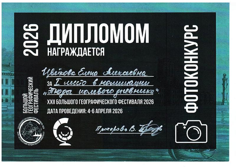 – Большой географический фестиваль 2026 стал важным этапом в моей научной работе. Отдельная гордость – победа в фотоконкурсе. География — это не только цифры, но и красота окружающего мира, – поделилась Елена Цветкова.
