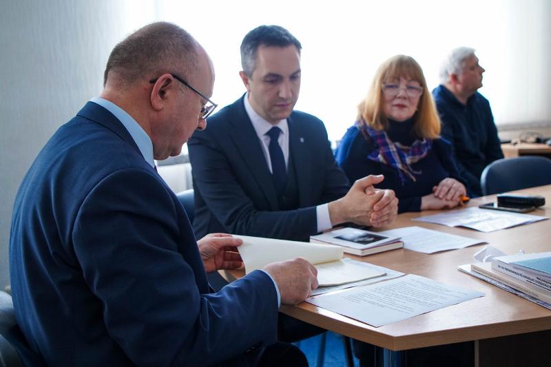 Юрий Николаевич Старилов поддержал работу межфакультетского проекта, познакомился с некоторыми артефактами из архива Н.Г. Нифонтова, задал уточняющие вопросы по наследию учёного-физика, в том числе об учениках, которые продолжили развитие его научных идей, и пожелал проекту новых результатов и открытий.