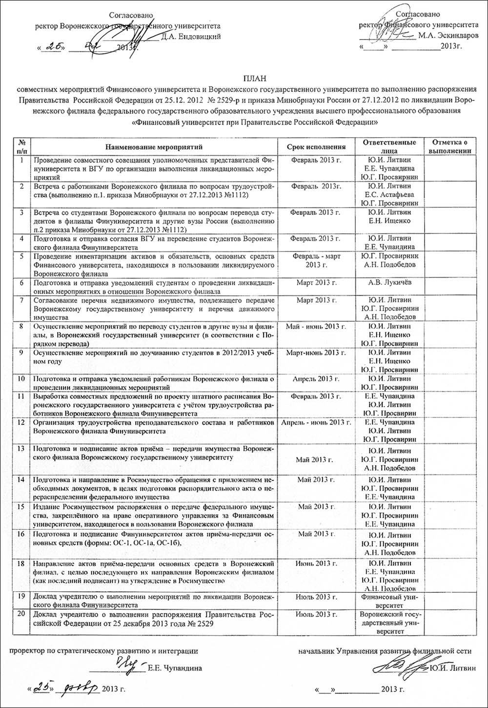 Присоединение к ФГБОУ ВПО «ВГУ» Воронежского филиала федерального государственного образовательного бюджетного учреждения высшего профессионального образования «Финансовый университет при Правительстве Российской Федерации»